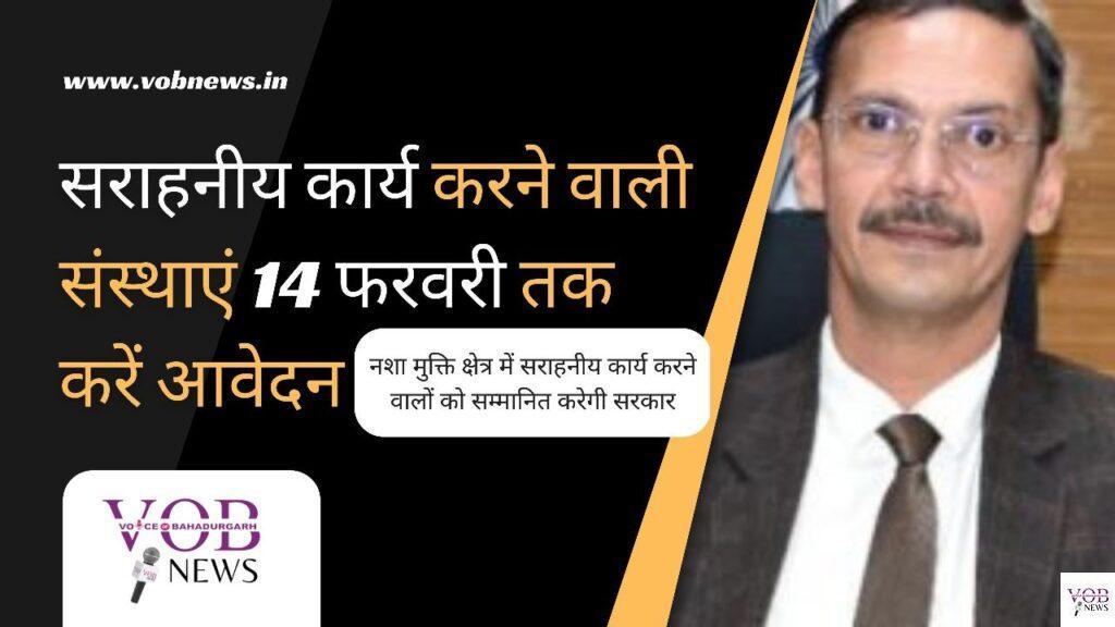 वॉइस ऑफ़ बहादुरगढ़ न्यूज़ झज्जर, 31 जनवरी  सामाजिक न्याय एवं अधिकारिता विभाग की ओर से  नशा मुक्ति के क्षेत्र में सराहनीय कार्य करने वाले सर्वश्रेष्ठ व्यक्ति, संस्थान, नशा मुक्ति केन्द्र को वर्ष 2022-23 के लिए राज्य पुरस्कार प्रदान करने के लिए आवेदन आमंत्रित किए गए हैं। आवेदन करने की अंतिम तिथि 14 फरवरी 2023 है।