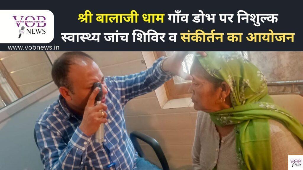 वॉइस ऑफ़ बहादुरगढ़ न्यूज़ संजय पांचाल रोहतक, भिवानी रोड स्थित श्री बालाजी धाम गाँव डोभ, रोहतक पर प्रत्येक रविवार को श्री बालाजी का सकिर्तन एवं धर्मार्थ डिस्पेंसरी पर दोपहर 12 बजे से 3 बजे तक एवं निःशुल्क स्वास्थ्य जाँच का आयोजन किया गया श्री बालाजी धाम डोभ के संस्थापक प्रधान पुरुषोत्तम दास बंसल ने आगे जानकारी देते हुये बताया कि धाम पर प्रत्येक रविवार और मंगलवार को स्वास्थ्य जांच शिविर लगाया जाता है प्रत्येक मंगलवार को शहर के मंडलों द्वारा सुंदरकाण्ड का पाठ होता है