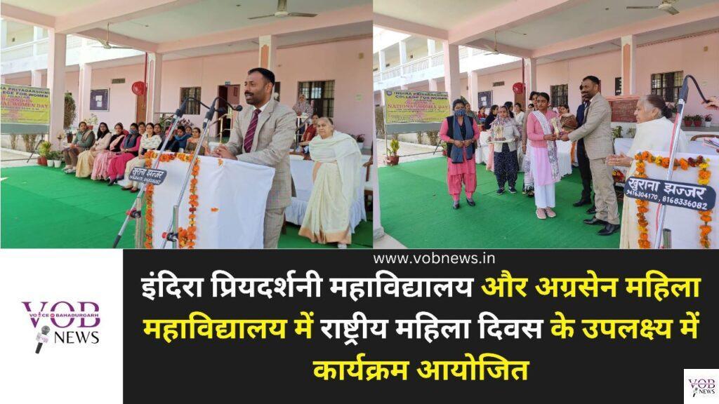 वॉइस ऑफ़ बहादुरगढ़ न्यूज़ झज्जर,13 फरवरी। इंदिरा प्रियदर्शनी महाविद्यालय झज्जर और अग्रसेन महिला महाविद्यालय झज्जर में हरियाणा राज्य विधिक सेवा प्राधिकरण के दिशा निर्देश अनुसार और जिला विधिक सेवा प्राधिकरण, ब्रेकथ्रू संस्था व जे के लक्ष्मी सीमेंट के सहयोग से राष्ट्रीय महिला दिवस का आयोजन किया गया,जिसमें डालसा सचिव एवं सीजेएम अरविंद कुमार बंसल ने बतौर मुख्य अतिथि भाग लेते हुए छात्राओं को हर क्षेत्र में आगे आने का आह्वान किया।