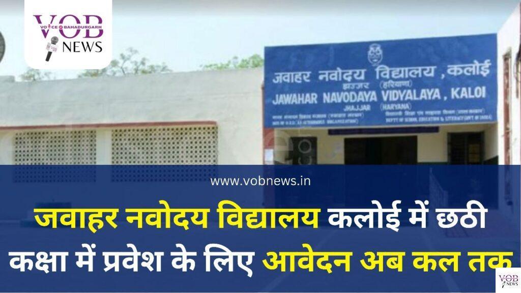 वॉइस ऑफ़ बहादुरगढ़ न्यूज़ झज्जर, 13 फरवरी। जवाहर नवोदय विद्यालय कलोई में कक्षा 6 में प्रवेश हेतु आवेदन की अंतिम तिथि 8 फरवरी निर्धारित की गई थी, लेकिन अब जवाहर नवोदय विद्यालय समिति द्वारा 15 फरवरी निर्धारित की गई हैं। इच्छुक विद्यार्थी बुधवार 15 फरवरी तक आवेदन कर सकते हैं। जिसकी जानकारी अभ्यर्थी वेबसाईट www.navodaya.gov.in और https// cbseitms .rcil . gov. in /nvs. पर जाकर नि:शुल्क आवेदन कर सकते हैं। यह जानकारी विद्यालय के प्राचार्य राज रत्न तिवारी ने सोमवार को यहां दी। उन्होंने बताया कि कक्षा छठी में प्रवेश के इच्छुक विद्यार्थी 15 फरवरी तक आवेदन कर सकते हैं।