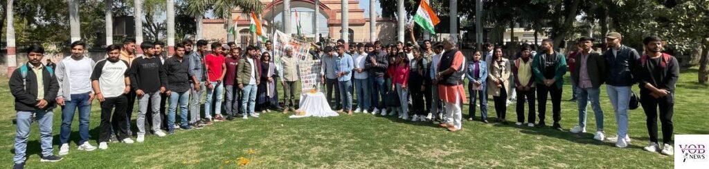 वॉइस ऑफ़ बहादुरगढ़ न्यूज़ संजय पांचाल रोहतक, अखिल भारतीय जाट सूरमा स्मारक महाविद्यालय में विद्यार्थियों व सुनो नहरों की पुकार मिशन के सदस्यों ने जम्मू कश्मीर के पुलवामा में हुए आतंकवादी हमले में शहीद हुए जवानों को पुष्प अर्पित करके श्रद्धांजलि दी व दो मिनट का मौन धारण किया कॉलेज के कार्यवाहक प्राचार्य डॉ. जगतवीर सहरावत ने कहा कि 14 फरवरी साल 2019 को देश आतंकी हमले से दहल गया था। पुलवामा के अवंतीपुरा में सीआरपीएफ के काफिले पर आतंकी हमला हुआ था। विस्फोटकों से भरी एक कार काफिले से टकरा गई थी। उसके बाद जो धमाका हुआ उसकी गूंज शायद आज भी हर एक भारतीय को याद है सामाजिक कार्यकर्ता एवं रक्तवीर अजय हुड्डा ने कहा कि वीर नायकों को हमने इस दिन पुलवामा में खो दिया था। हम उनके साहसिक बलिदान को कभी नहीं भूल सकते और उनका अदम्य साहस हमारे लिए प्रेरणा स्त्रोत बना रहेगा इस अवसर पर डॉ. मुनीष नांदल, डॉ. रामिन्द्र हुड्डा, डॉ. जसमेर सिंह, अजय हुड्डा, केवल दहिया, रौनक, केशव हुड्डा, जतिन, कमल, रूबी, निशु, पूजा, निधि, शिखा सहित सैकड़ों विद्यार्थी उपस्थित रहे।