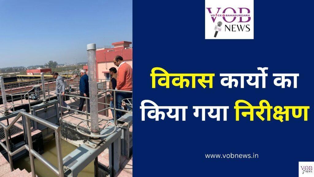 वॉइस ऑफ़ बहादुरगढ़ न्यूज़ संजय पांचाल रोहतक, धीरेन्द्र खड़गटा आयुक्त नगर निगम, रोहतक के निर्देशानुसार नगर निगम क्षेत्र में चल रहे विकास कार्यो का तकनीकी शाखा के अधिकारियो द्वारा निरीक्षण किया गया आयुक्त द्वारा बताया गया कि तकनीकी शाखा के अधिकारियो के अधिकारियो को पूर्व में निर्देश दिए गए थे वे नगर निगम क्षेत्र में चल रहे विकास कार्यो का निरंतर निरीक्षण करें तथा कार्यो में गुणवता पर विशेष ध्यान दिया जाये। आज नगर निगम के अधिकारियो द्वारा अमृत योजना के तहत चल रहे कार्यो का निरीक्षण किया गया। जिस दौरान कन्हेली एस.टी.पी., गढी बोहर एस.टी.पी., मकड़ौली एस.टी.पी. पर गये तथा सम्बन्धित एजेन्सी को कार्य जल्द से जल्द पूर्ण करने व निर्धारित समयावधि में करने के निर्देश दिए गए कार्यो का निरीक्षण सतीश गोयल, अधीक्षण अभियंता व मंदीप धनखड़, कार्यकारी अभियंता, वसीम अकरम व तरूण नगर अभियंता आदि द्वारा किया गया।