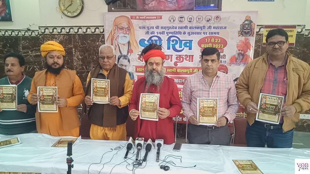 कथा के उपलक्ष में 17 फ़रवरी को भव्य कलश यात्रा निकाली जाएगी जो स्वामी बालक पुरी डेरे से चलकर विभिन्न जगह लेबर चौंक, पटेल नगर, चिन्योट कालोनी से होती हुई कथा स्थल पुरी धाम पर पहुँचेगी।