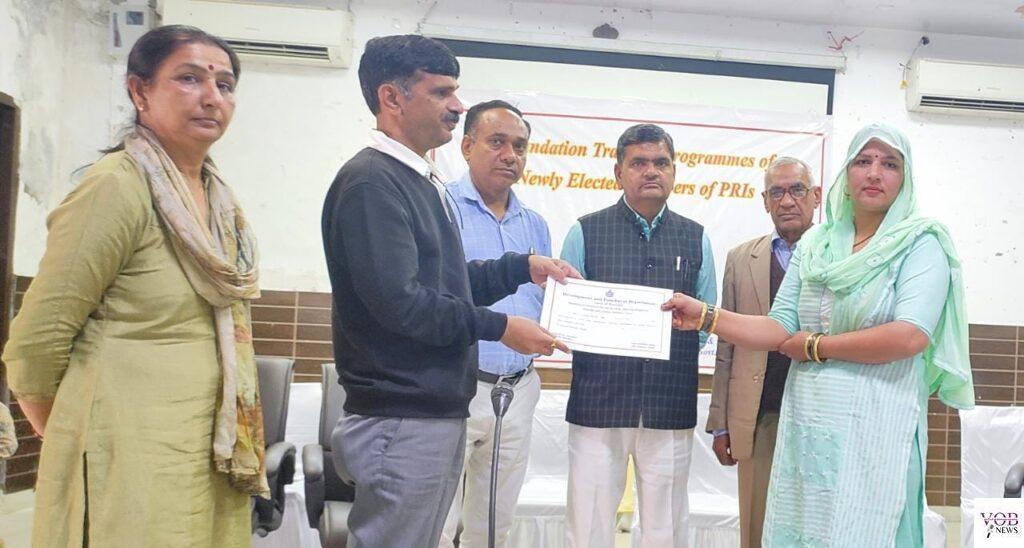एचआईआरडी नीलोखेड़ी से आये मास्टर ट्रेनर आर सी पुनिया व सुशीला देवी ने कहा की इस प्रशिक्षण कार्यक्रम का मुख्य मकसद है की आप सभी प्रतिनिधि ग्रामीण विकास से जुड़ी योजनाओं से अवगत हो और आम जनता तक इन स्कीमों के बारे में पहुचाएं। उन्होंने हरियाणा पंचायती राज अधिनियम 1994 में निहित जानकारियों को बारीकी से अवगत करवाया। प्रशिक्षण उपरान्त एडीसी एवं सोईओ प्रदीप कौशिक ने सभी सदस्यों को प्रशिक्षण प्रमाण पत्र दे कर सम्मानित किया। इस दौरान जिला विकास एवं पंचायत अधिकारी ललिता वर्मा, सभी बीडीपीओ, पीओ लखविंदर, सहायक समन्वयक तकनीकी संदीप बोडिय़ा भी मौजूद रहे।