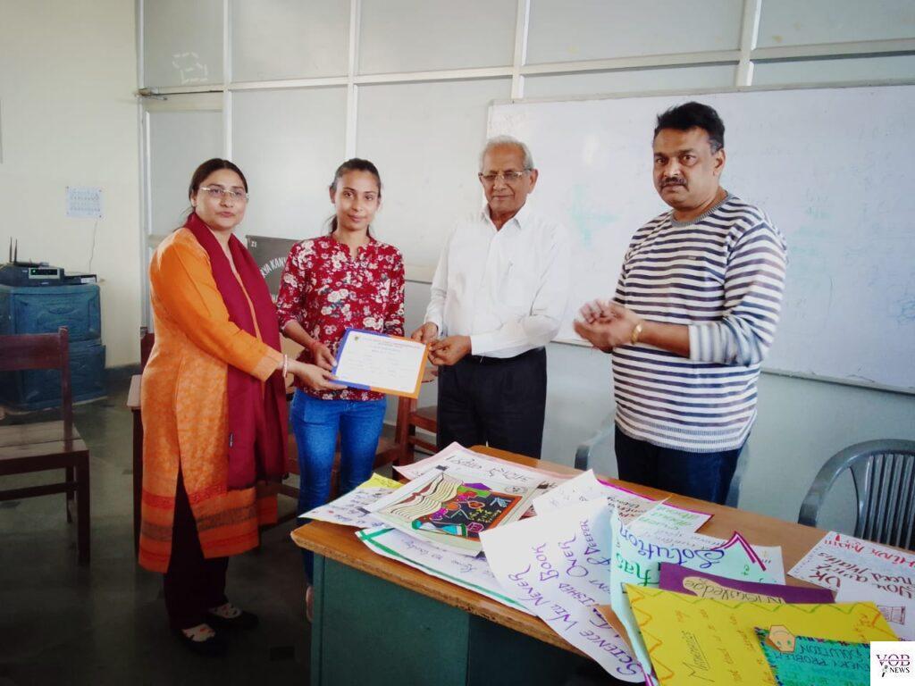 श्री मनीष जिंदल, प्रधान वैश्य आर्य कन्या महाविद्यालय ने कार्यक्रम की अध्यक्षता की। उपप्रधान श्री प्रेम बंसल जी ने छात्राओं के प्रयास की सराहना की। प्रतियोगिता में मुस्कान, तनु बी.एस.सी द्वितीय वर्ष ने प्रथम, रुचिका एम.एस.सी. भौतिकी द्वितीय वर्ष ने द्वितीय स्थान और तमन्ना एम.एस.सी. मैथ्स ने तृतीय स्थान प्राप्त किया। स्लोगन प्रतियोगिता में तमन्ना एम.एस.सी. मैथ्स ने प्रथम, प्रीति एमएससी मैथ द्वितीय तथा उमा बीएससी अंतिम वर्ष और सलोनी एमएससी मैथ्स ने तृतीय स्थान प्राप्त किया। इस दौरान पोस्टर प्रतियोगिता में कुमारी रेनूका, रीतु और आरती ने भी भूमिका निभाई और स्लोगन प्रतियोगिता में कुमारी निकिता दलाल, रचना, स्वीटी ने निर्णायक मंडल की भूमिका निभाई।