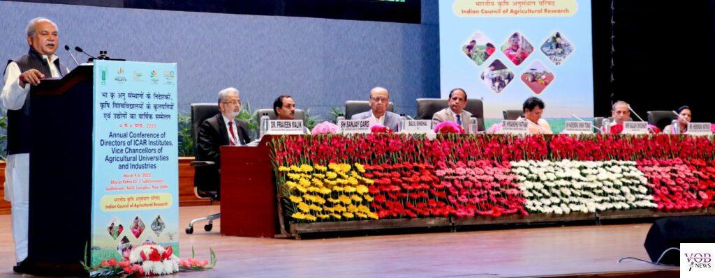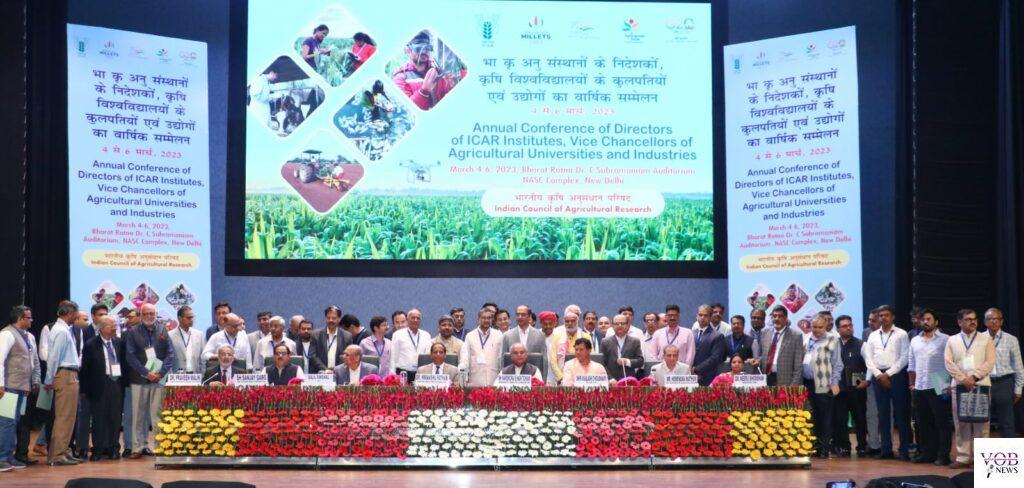 वॉइस ऑफ़ बहादुरगढ़ न्यूज़ नई दिल्ली, 6 मार्च 2023, भारतीय कृषि अनुसंधान परिषद (आईसीएआर) व इसके तहत आने वाले संस्थानों, कृषि विश्वविद्यालयों व उद्योगों का सम्मेलन दिल्ली में आयोजित किया गया। इसमें केंद्रीय कृषि एवं किसान कल्याण मंत्री श्री नरेंद्र सिंह तोमर व राज्य मंत्री श्री कैलाश चौधरी भी शामिल हुए। सम्मेलन के माध्यम से आईसीएआर का उद्देश्य उद्योग, अनुसंधान एवं शिक्षा जगत के उन संगठनों के साथ काम करना है, जिनकी आईसीएआर की तकनीकों में रूचि है, ताकि पारस्परिक लाभ प्राप्त करते हुए इसका दीर्घकाल में व्यापकता के साथ कृषि क्षेत्र सहित देश को फायदा मिल सकें। आईसीएआर से सम्बद्ध 100 से ज्यादा संस्थानों के साथ ही कृषि वि.वि. भी हैं, जिनके पास सुसज्जित अनुसंधान/विकास सुविधाएं, प्रयोगशालाएं/बुनियादी ढांचा सहित विभिन्न कृषि सुविधाएं उपलब्ध है, जिनका परस्पर उपयोग सार्वजनिक भलाई के लिए किया जा सकता है।